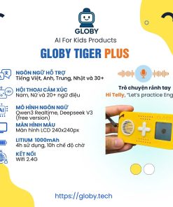 Globy Tiger plus mang đến trải nghiệm học ngôn ngữ đầy hứng khởi cho trẻ. Hỗ trợ hơn 30 ngôn ngữ (Việt, Anh, Trung, Nhật…), cùng hội thoại cảm xúc đa dạng với giọng Nam/Nữ và 20+ ngữ điệu, sản phẩm giúp bé luyện nói tự tin hơn mỗi ngày.
